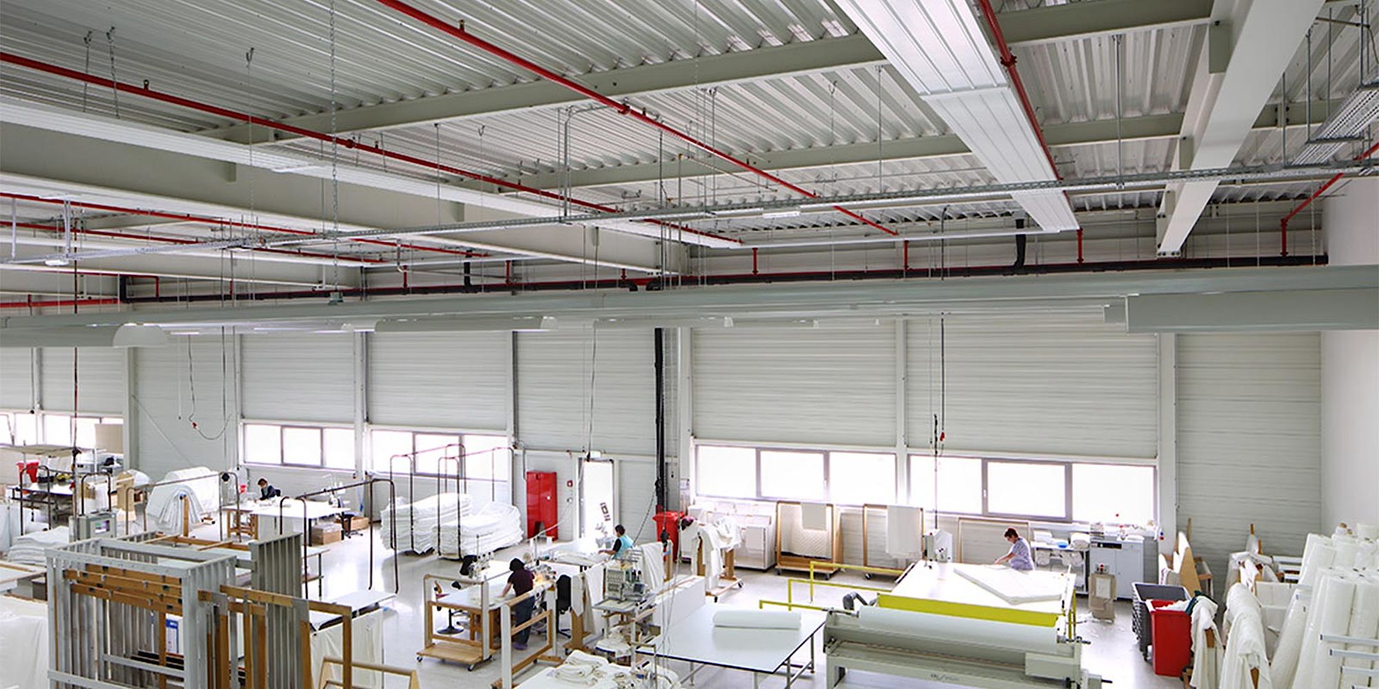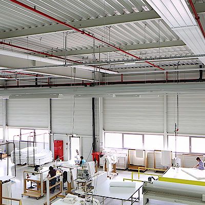 Durch die Montage unter der Decke wird kein Raum in der Halle verschwendet und die angenehme Wärme ist sowohl für die Mitarbeiter als auch für die Produktionsgüter positiv. Mit ihrer geringen Aufheiz- bzw. Abkühlzeit sorgen die Deckenheizplatten für eine gleichmäßige Temperaturverteilung.