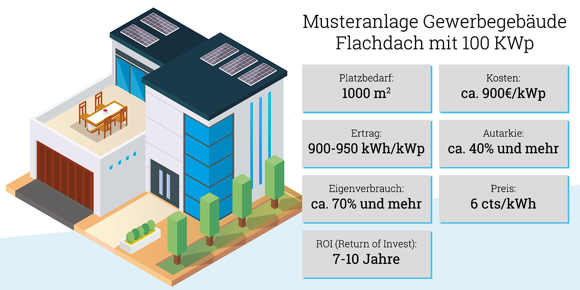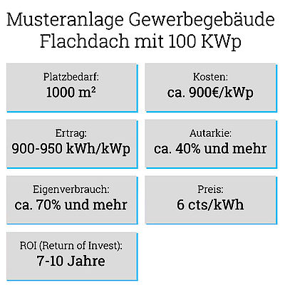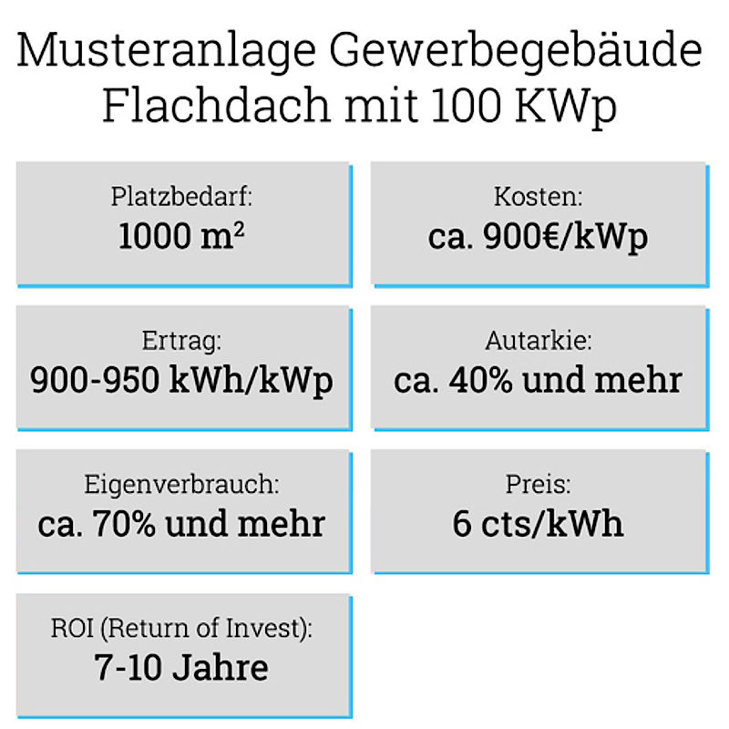 Darüber hinaus fällt, im Gegensatz zur Nutzung von Photovoltaik in Privathaushalten, der Energieverbrauch in einem Unternehmen vor allem tagsüber an, wenn die Anlage den Strom erzeugen kann. So entfällt hier der Energieverlust durch den Stromspeicher und der produzierte Strom kann optimal an Ort und Stelle genutzt werden.