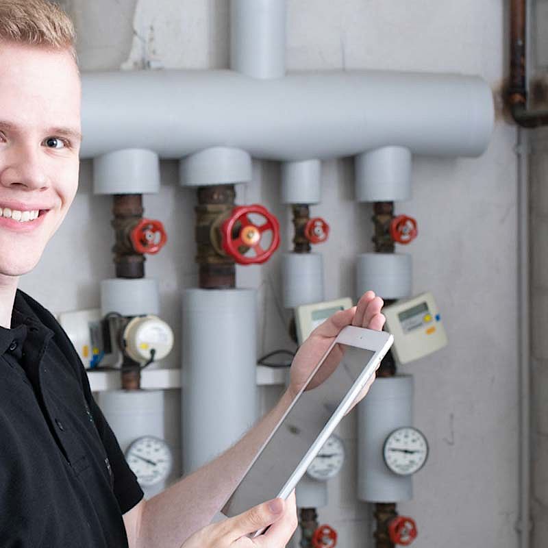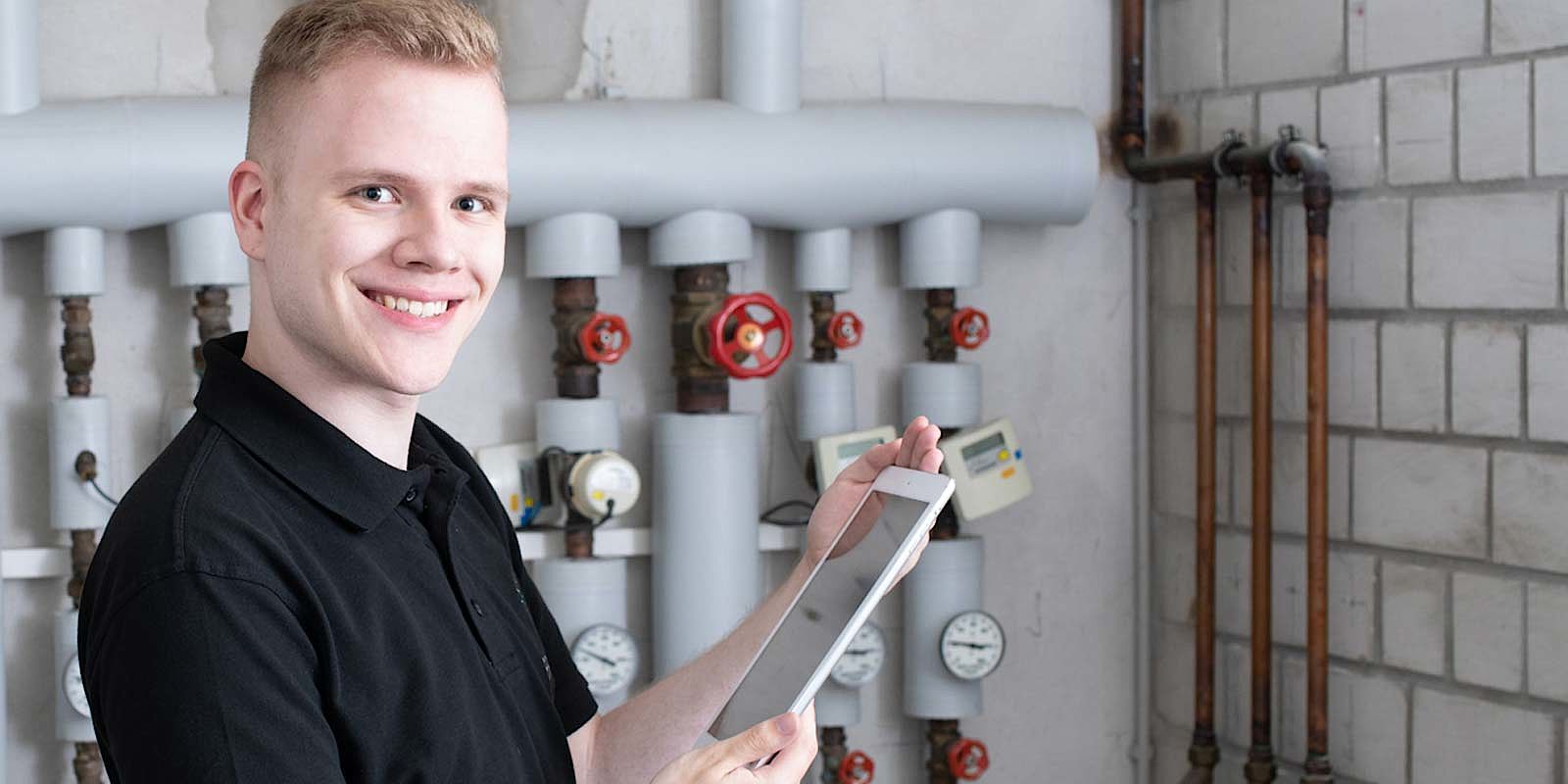 Andy ist Anlagenmechaniker für Sanitär, Heizung und Klima bei Heizkraftanlagen mit Leib und Seele. In seinem Job stattet er Haushalte und Betriebe mit der passenden Heizungstechnik aus, baut Anlagen für die Wasserver- und entsorgung, richtet moderne Bäder ein und kümmert sich um umweltschonende Energietechnik.