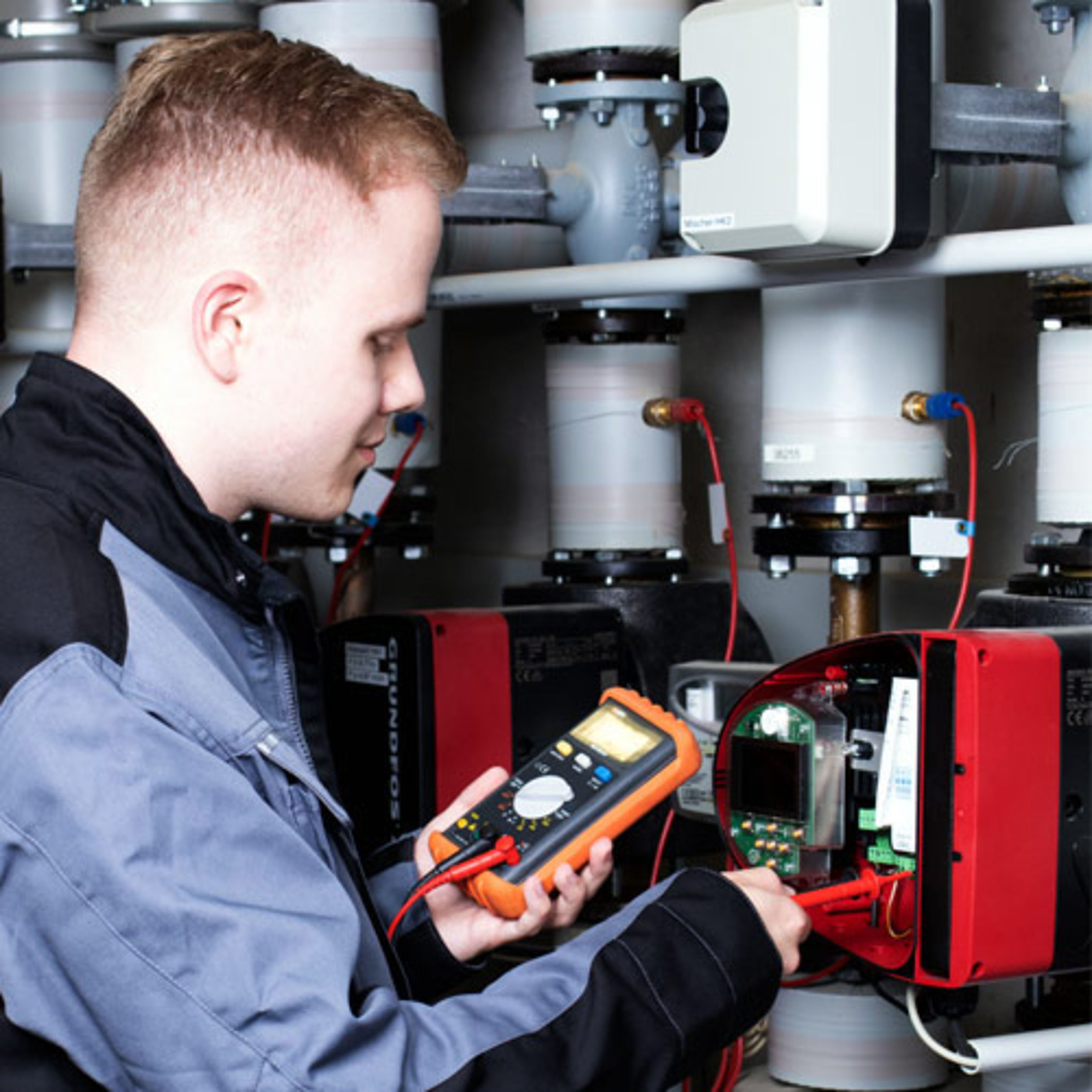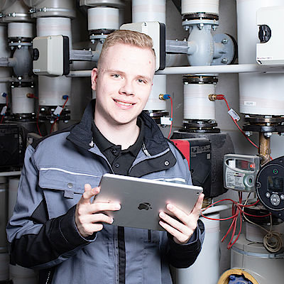 Langeweile kommt in Andys Arbeitsalltag sicher nicht auf, denn als Anlagenmechaniker für Sanitär-, Heizungs- und Klimatechnik ist er der Experte in Sachen Gebäudetechnik. Ob im Betrieb oder beim Kunden: Mit Köpfchen und Geschick sorgt er dafür, dass die Heizungsanlage einwandfrei läuft, setzt die Pläne und Ideen zu erneuerbaren Energien um oder stellt eine optimale Energienutzung sicher. Andys Einsatzgebiete sind vielfältig und abwechslungsreich. Er ist Planungstalent, Teamplayer, Kundenberater und Energieexperte in einem und hat den absoluten Durchblick, wenn es um Versorgungssysteme geht.