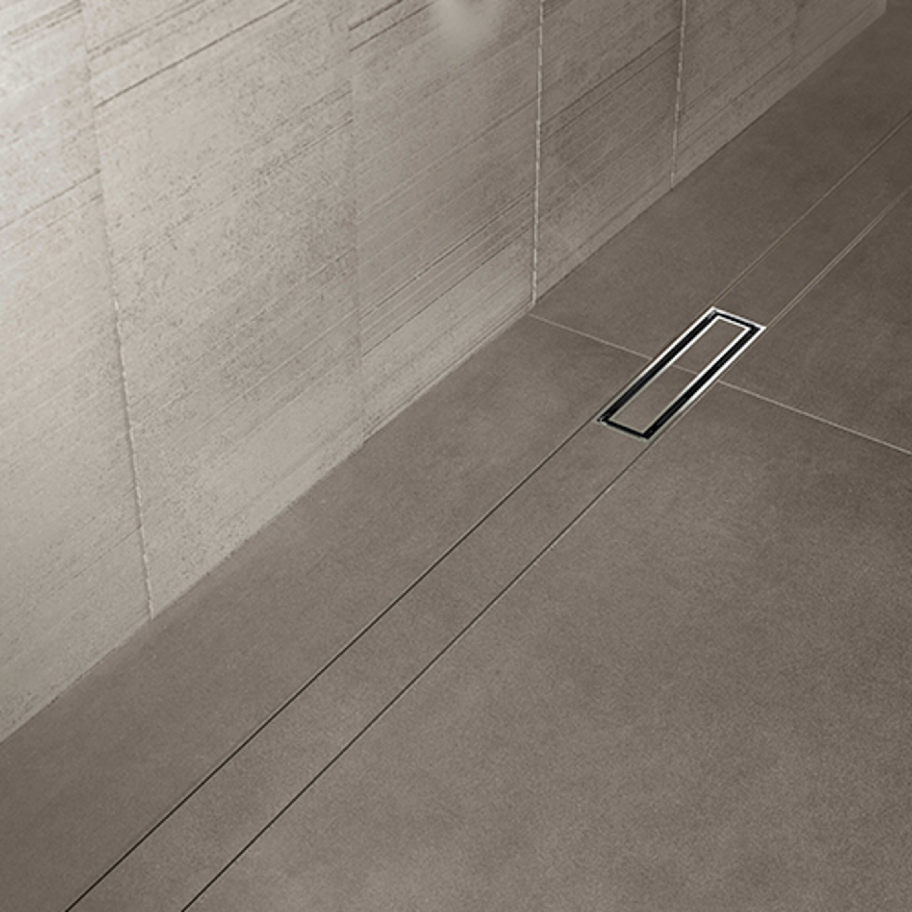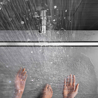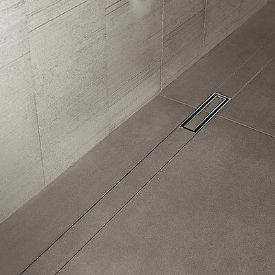 Die Geberit Duschrinne CleanLine50 verfügt über ein integriertes Gefälle für eine schnelle Wasserableitung.