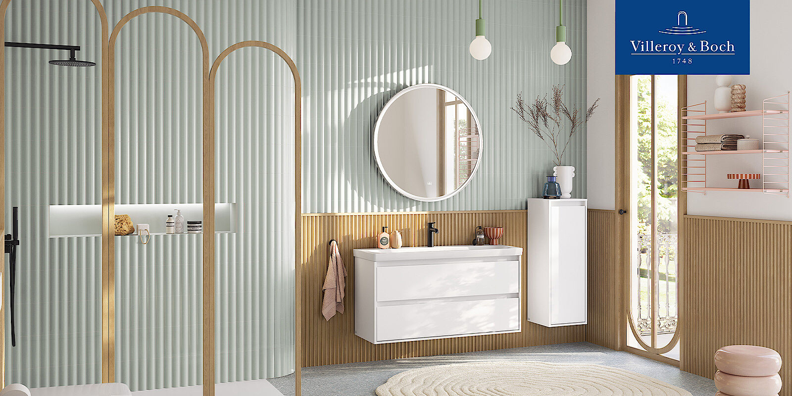 Modern, trendstark, individuell – Mit Skyla bringt Villeroy & Boch frischen Wind ins Bad. Die spannende Verbindung aus sanften Rundungen, klaren Kanten und einer asymmetrischen Formensprache setzt ein echtes Design-Statement. Dank der Vielfalt an modernen Möbelfarben und mit zwei unterschiedlichen Armaturen-Finishes passt sich Skyla mühelos jedem Wohnstil an und lässt sich je nach persönlichem Geschmack entweder skandinavisch schlicht, mit lockerem Boho-Vibes oder in zarten Danish-Pastels inszenieren.
